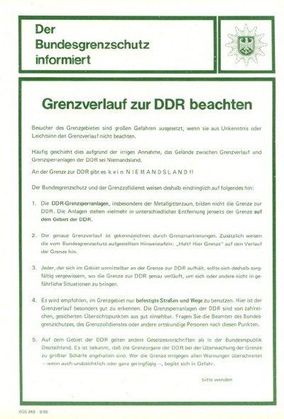 3. Jeder, der sich im Gebiet unmittelbar an der Grenze zur DDR aufhält, sollte sich deshalb sorgfältig vergewissern, wo die Grenze zur DDR genau verläuft, um sich oder andere nicht in gefährliche Situationen zu bringen.